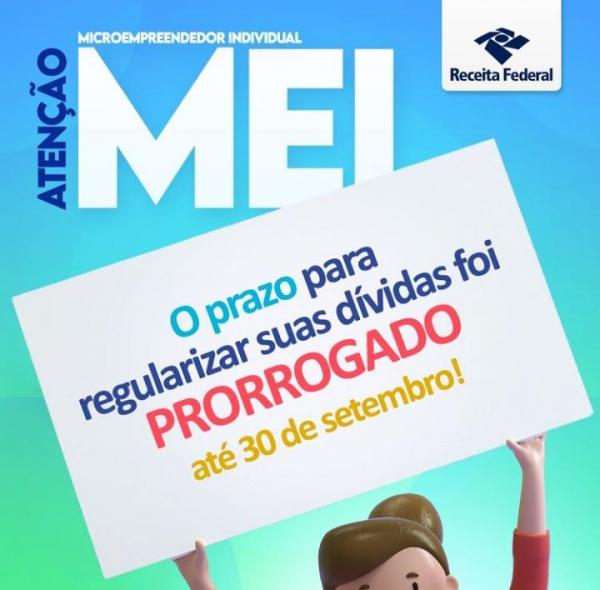 A Receita Federal está prorrogando o prazo para regularização das dívidas dos Microempreendedores Individuais (MEI) para 30 de setembro. Os débitos que estiverem em aberto no mês de outubro serão enviados à PGFN para inscrição em Dívida Ativa da União.